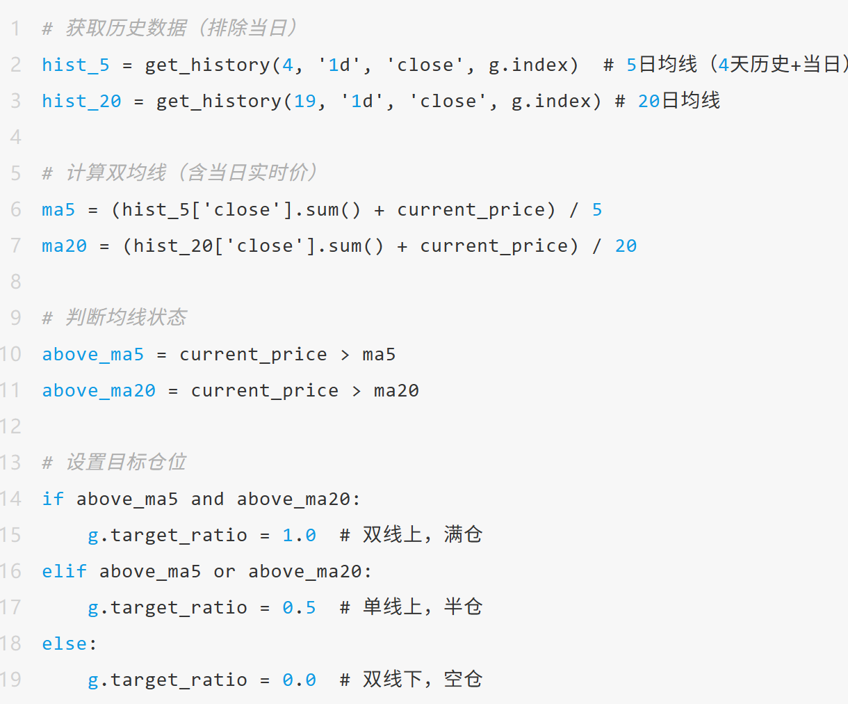 l 当价格同时站上5日和20日均线时,满仓。