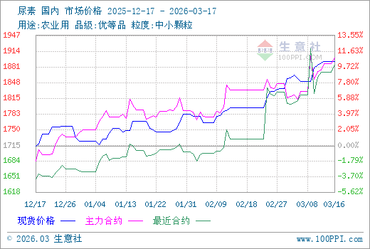 3月13日尿素期货主力合约2605收盘价为1889元/吨。