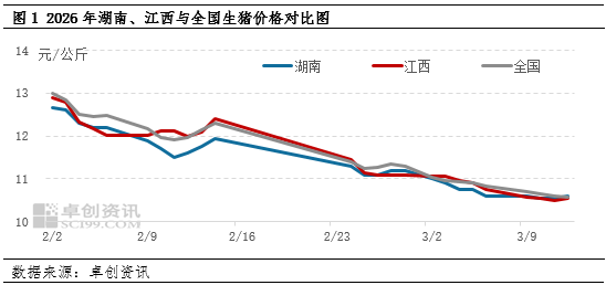 【导语】3月中上旬,湖南、江西产区生猪价格持续下行。受前期猪源积压、养殖端出栏积极性提升影响,两地生猪供应充裕,叠加节后终端消费恢复乏力,市场整体呈现供过于求格局,猪价持续承压。预计3月中下旬,供应压力仍将延续,需求端缺乏明显利多支撑,两地猪价或维持偏弱运行态势。