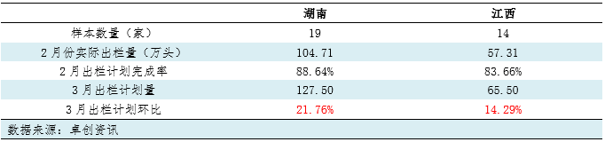 表 湖南、江西样本养殖企业2月生猪出栏情况及3月出栏计划