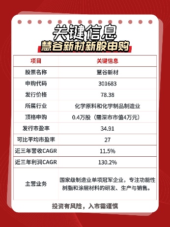 #慧谷新材 #新股申购 #创业板 #涂层材料 #投资理财 #打新攻略
