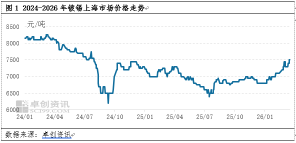见图1,一季度镀锡板价格稳步攀升。截至3月19日,上海地区镀锡板季度均价报7119元/吨,环比去年四季度上涨3.33%,同比微跌0.14%。推动价格上涨的主要动力来自原料端锡价的强势拉涨,以及下游需求的韧性托底。值得注意的是,2月底以来中东局势的急剧升级,对镀锡板出口造成一定干扰。出口受阻加剧了国内市场的资源流通压力,阶段性对价格形成利空影响。