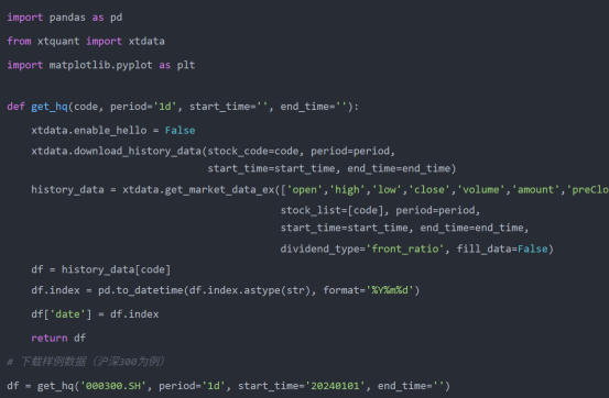 直接给可运行代码,拿任意股票历史数据算出来,行情数据这里我们依然用miniQMT+xtquant。