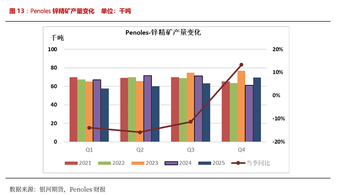 位于巴西的Vazante 2025年产量12.84万吨,同比-8.15%。2025Q4该矿山产量3.75万吨,环比+11.28%,同比+10.29%。