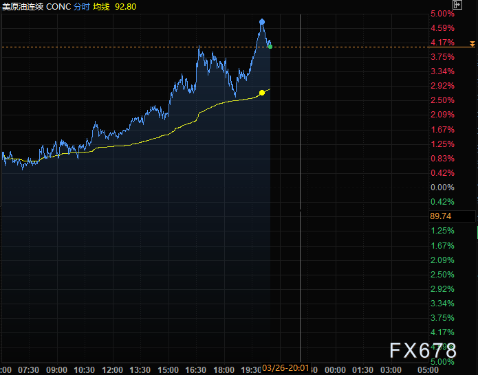 (WTI原油期货连续分时图,来源:易汇通)
