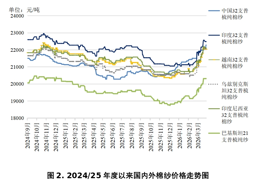 宏观市场方面,中东冲突仍在持续,能源价格偏强运行。近日,中东地缘政治冲突仍在发酵,霍尔木兹海峡、曼德海峡的航运仍面临威胁,导致国际能源价格维持高位,显著推升农资价格上涨,大幅提高棉花种植成本。同时,化纤、染料、运费等成本也在上升。此外,高油价进一步强化通胀预期,正在对消费需求形成制约,消费前景不容乐观。世贸组织预计2026年全球货物贸易增速降至1.9%(上年2.4%),并警告若中东冲突持续将进一步拖累全球贸易增长。与此同时,3月欧元区综合PMI降至10个月低点50.5,美国综合PMI亦创去年4月以来最低,均低于预期。特朗普拟于5月访华,中美经贸磋商动向需密切关注。3月25日,美国白宫新闻秘书莱维特在记者会上宣布美国总统特朗普计划于5月14日至15日正式访问中国。我国外交部回应称元首外交对中美关系具有不可替代的战略引领作用,双方就访华事宜保持沟通。中美经贸磋商结果或将为市场提供新的指引,需密切关注。