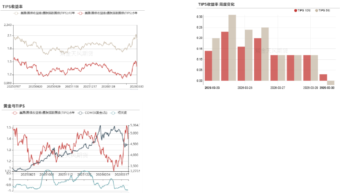 往后看,短期黄金仍将维持承压态势,难以快速反弹。当前市场在中东冲突长期化与特朗普政府 TACO 退让预期之间反复博弈,美伊双方停火条件分歧巨大,暂无明确的冲突退出路径,冲突进一步升级的风险仍存,包括美军地面介入伊朗等情景。在此背景下,石油与美元的上行确定性更高,黄金将受美股回调拖累,叠加流动性冲击预期表现偏弱;同时美债也因通胀预期抬升而走势疲软。
