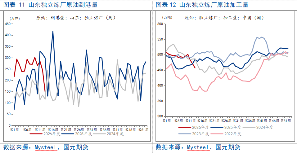 2.2 山东独立炼厂原油到港量环比下降
