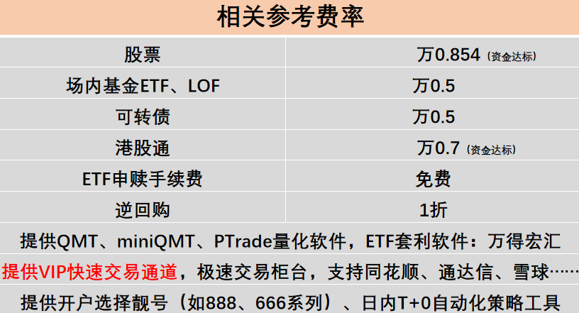 QMT和PTrade是目前市场上成熟度非常高的量化交易软件,开通使用也非常便捷,内置多种量化交易工具, 开通使用非常便捷,可以实现超高频、自动化、个性化的股票交易策略,对于短线追涨停交易来说,能够提高交易速度。各项量化交易费率标准,我已经整理在文末可供参考!