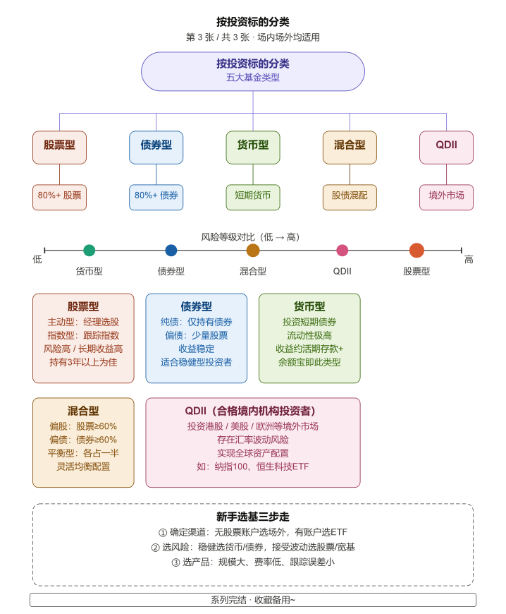 很多新手买基金都是"跟着感觉走",结果亏了钱也不知道为什么。今天用三张图帮你把中国基金市场搞清楚!