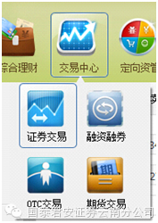 · 软件交易:在“交易中心”菜单下,包含了证券交易、融资融券、OTC交易、期货交易等功能,具体使用方法与“国泰君安富易交易”类似;