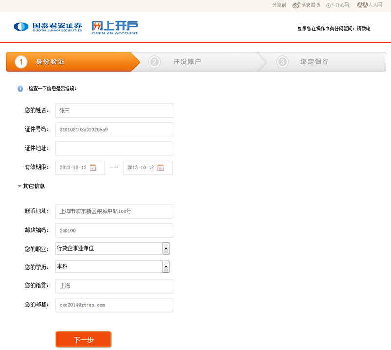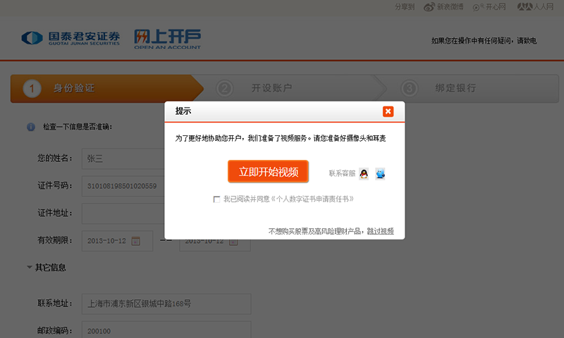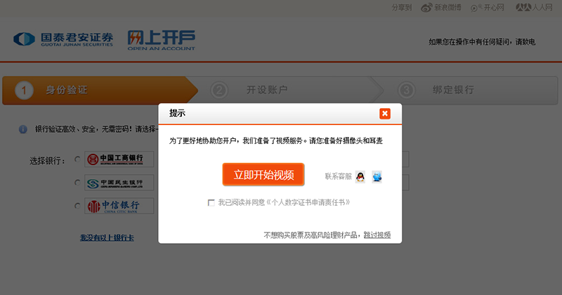 国泰君安网上开户流程震撼升级! 【序言】足不出户,股票开户,5分钟完成,开户找道哥,免费学炒股实用技术! 开户完成后请联系道哥,根据您所选的套餐加入到对应的QQ群交流学习: 国泰君安证券除了柜台开户以外,网上开户和手机开户震撼升级啦,赶紧体验: