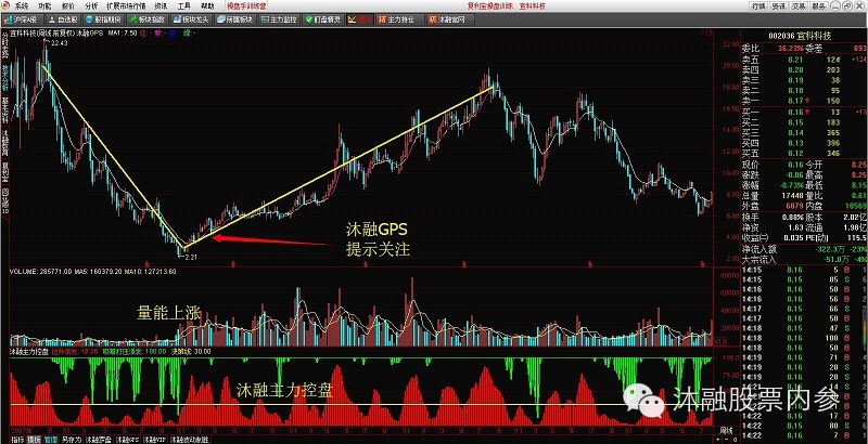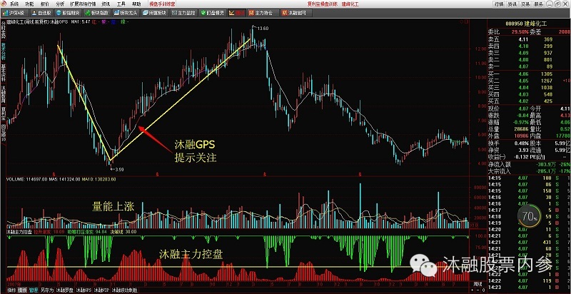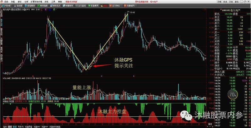 上图中出现V形反转,并且沐融GPS和沐融主力控盘发出信号,我们就可以关注它了,至于这两个指标是什么原理呢?请各位登陆我们官网:www.mrjy.com.cn进行学习。