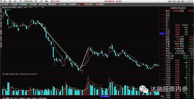 但是我们在操作的时候往往跟书本上的写的不一样,下图中,盘面出现V形走势,成交量也伴随着放大,如但是股价又一次下跌。