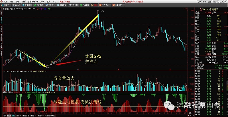 这就要结合我们的一项技术指标(沐融VIP和沐融主力控盘)如下图