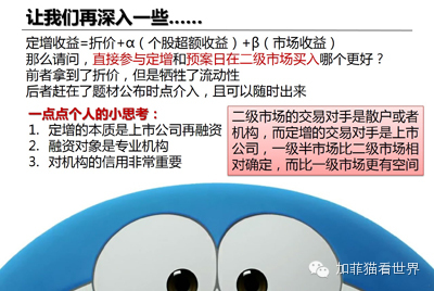 第三,个人以为,还是要早下手,没有“有目共睹”的超额收益,定增越来越火热,折价空间就会越来越小。那么还真就不如直接在二级市场买股票了。