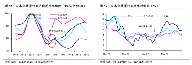 虽然计划结束后产能利用率再次下滑,行业总产能也不断收缩,但马歇尔计划的实施在一定程度上延缓了产能利用率的失速下滑,行业总产能也并未迅速坍缩,而是台阶式下行,较为平缓。