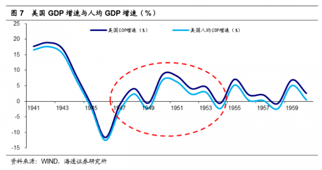 二战结束后,美国经济增速跌至谷底。