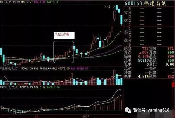 股价在充分整理后,伴随成交量温和放大,股价小幅上扬且连续拉出8根小阳线(包括小阳星线),表明依然有庄家再限价买入,庄家的建仓已经进入尾声,股价随时可能大幅爆发,是明显的低吸信号。
