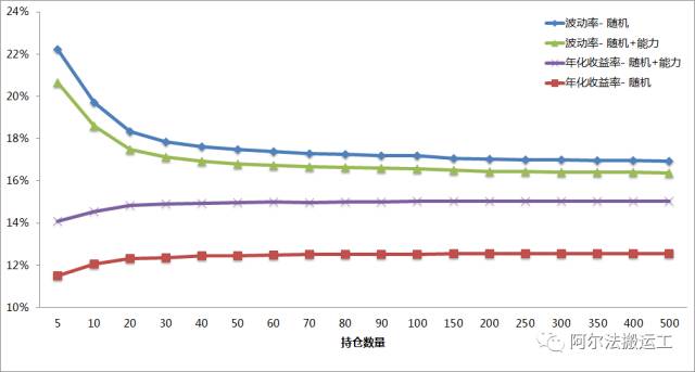 可是问题来了,就算是在价值股股票里随机选择,随着持仓组合的下降,年化收益率也会下降。