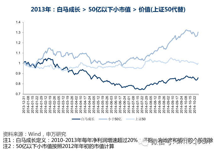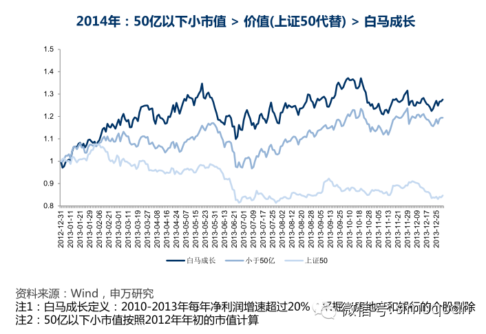(1)2014年则突出表现为50亿以下小市值 > 价值 > 白马成长
